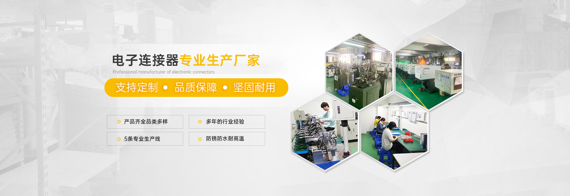 多年来专注于电子连接器生产制造,拥有5条现代化生产线,厂房面积达3000㎡